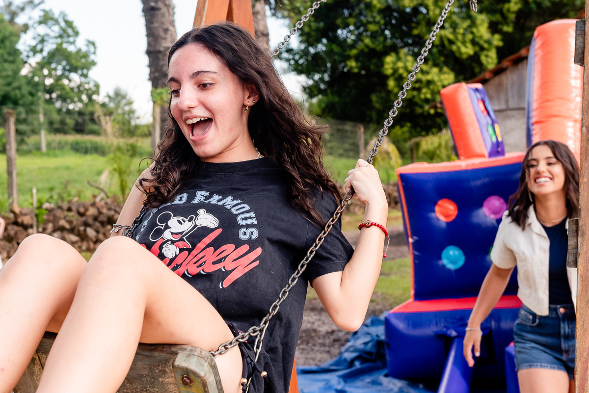 Os retratos aconteceram em um lugar lindo, à altura da delicadeza e da força que ela carrega. Já a festa foi em outro cenário igualmente encantador, onde a alegria tomou conta. Teve churrasco, passeio de cavalo, futebol no sabão e muita diversão, da melhor forma que esse dia merecia ser vivido.
