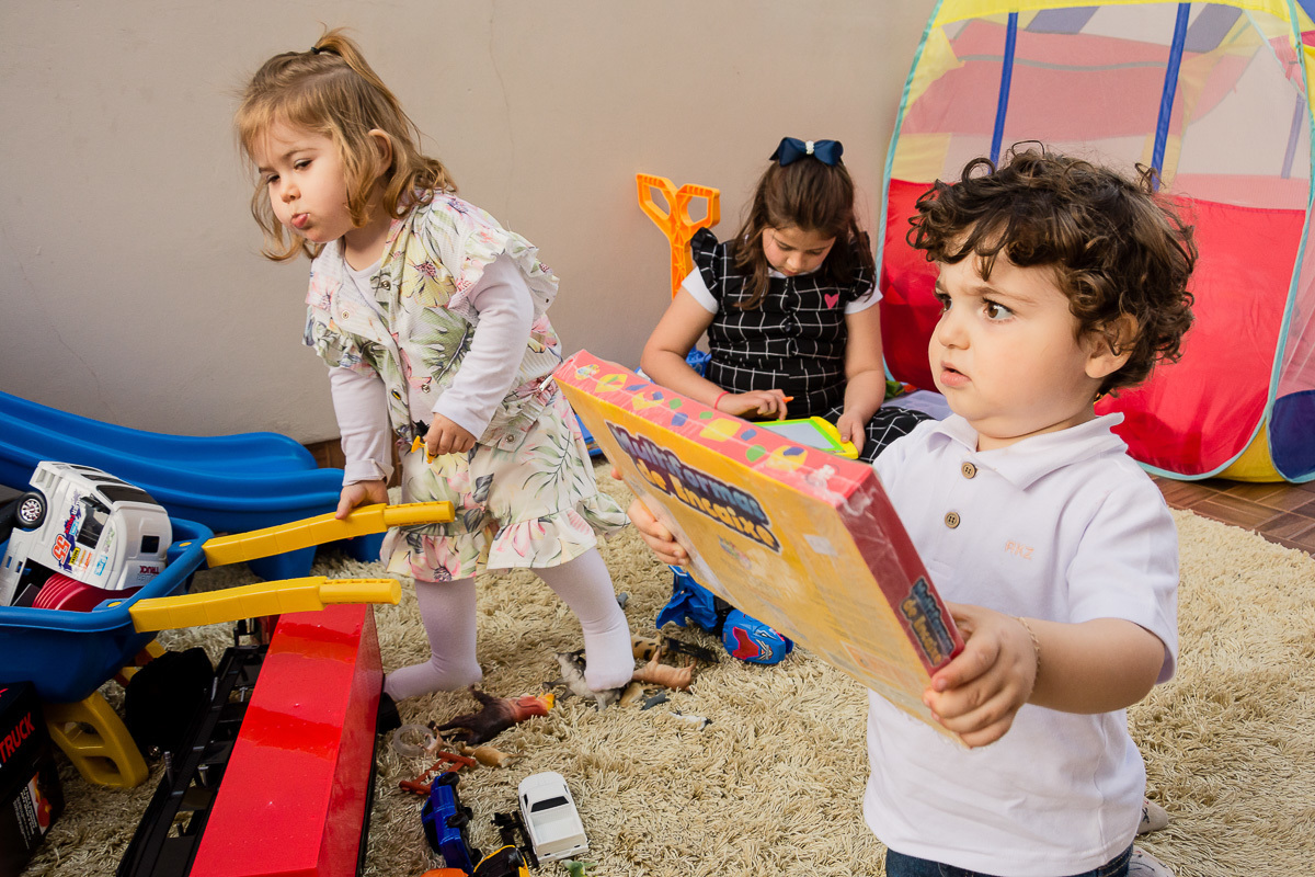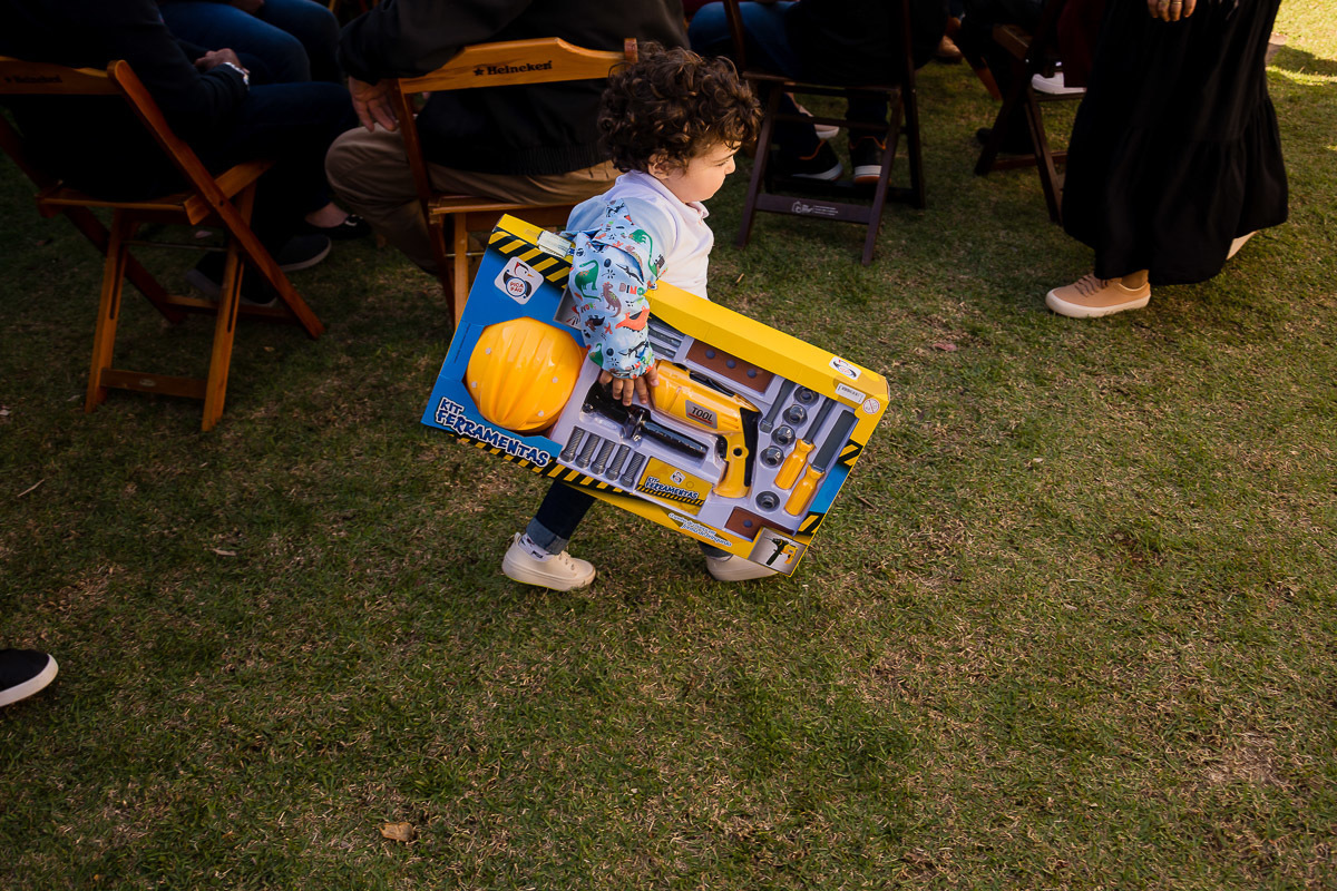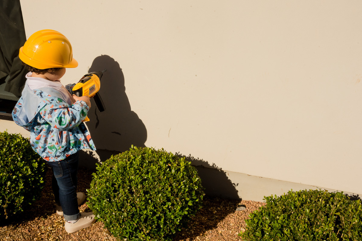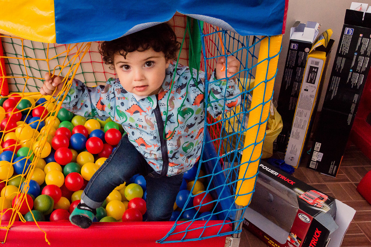 O Miguel comemorou o seu aniversário de 02 anos da melhor forma possível, com pessoas que o amam ao seu redor, muito espaço para correr e brincar na sua casa! Já estava todo feliz pois era o aniversário dele, assim que começaram a chegar os convidados com os presentes, os olhinhos do aniversariante brilhavam, aí chegou uma parafusadeira de brinquedo e o menino não quis mais saber de outra coisa, saiu por ai consertando tudo o que via pela frente!