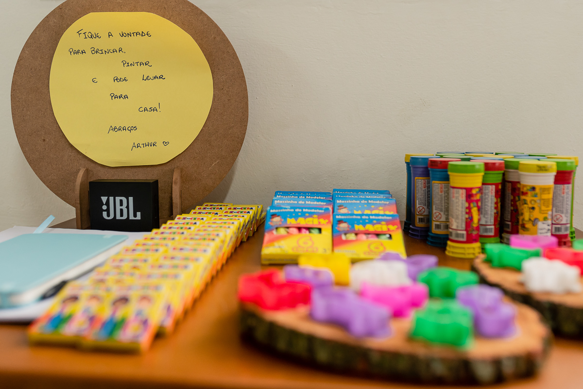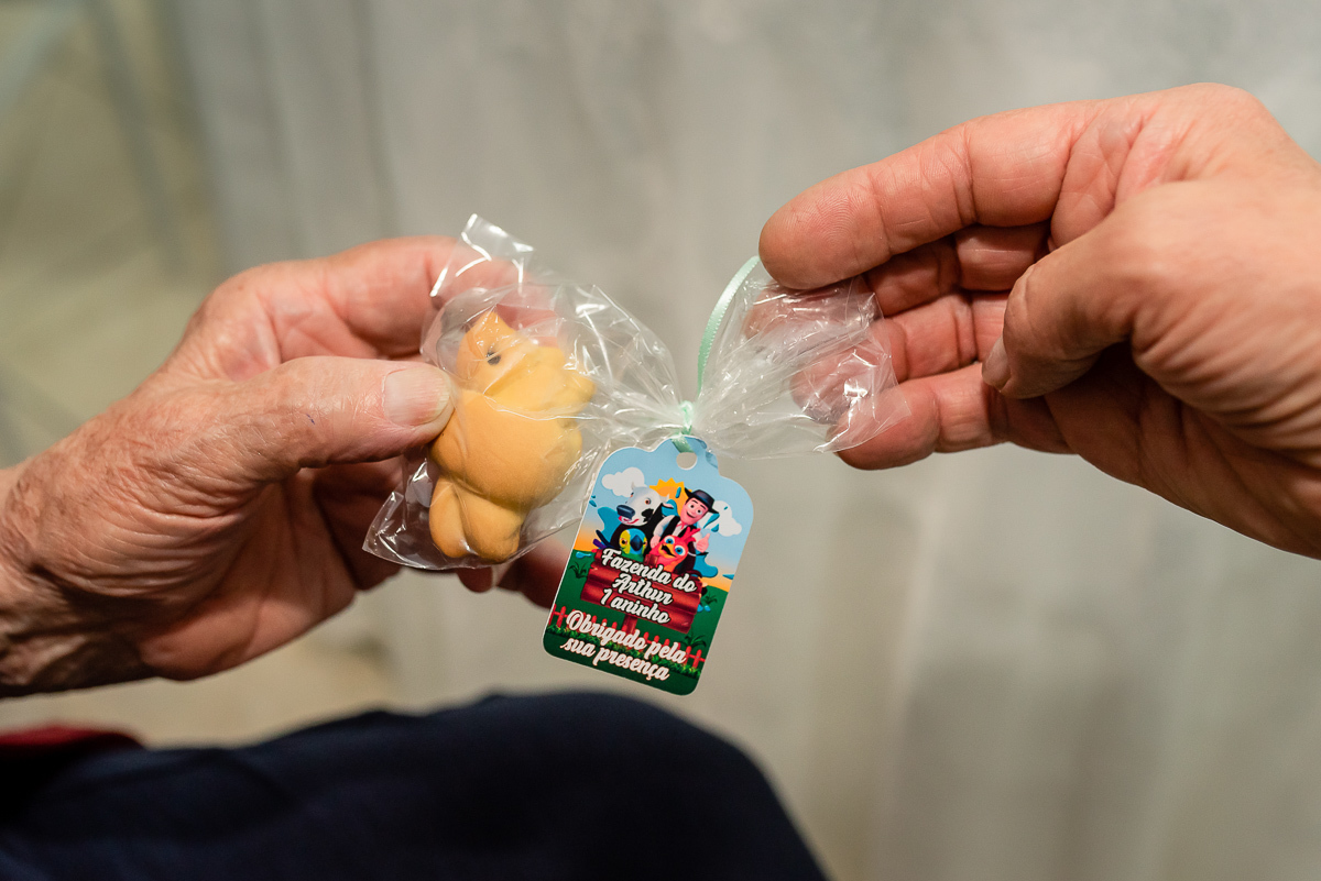 Não posso deixar de mencionar o capricho que a família teve em cuidar de cada detalhe da festa, inclusive da lembrancinha que era um pãozinho em formato de pomba e do caderninho onde os convidados puderam deixar lindas mensagens para o Arthur!