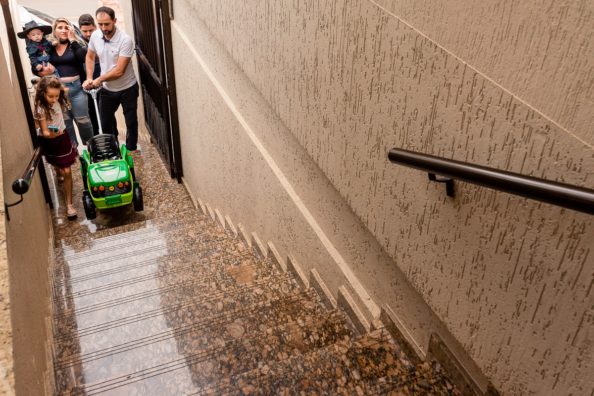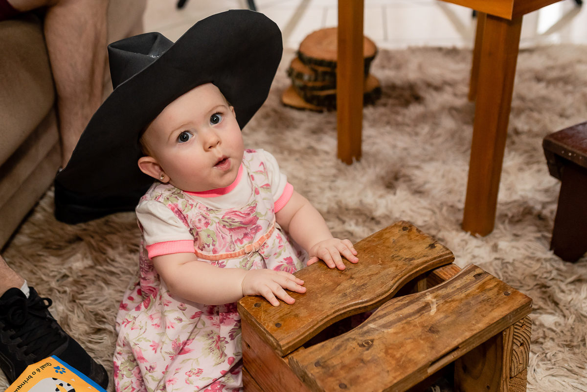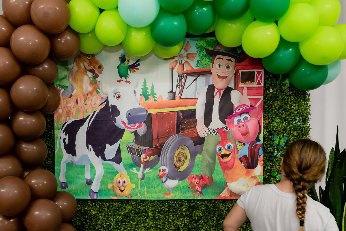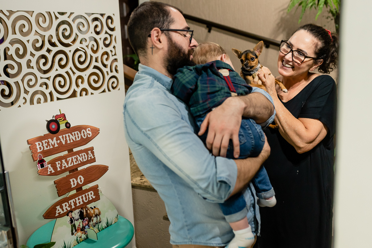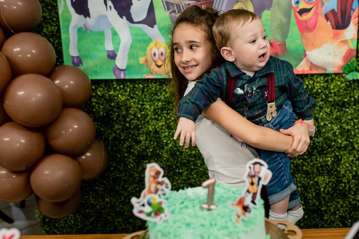 Chegou de chapéu e pilotando o seu trator para o delírio dos convidados. Deu uma bandinha e foi logo fazer as fotos e cumprimentar os convidados para depois explorar o local e brincar com os amigos, porque é o lugar que ele gosta de ficar, livre e solto para andar e conhecer o ambiente em que está. Mas como ninguém é de ferro, o Arthur estava tão confortável no colo do dindo que acabou pegando no sono e as primas continuaram a algazarra brincando com o bolo de aniversário!