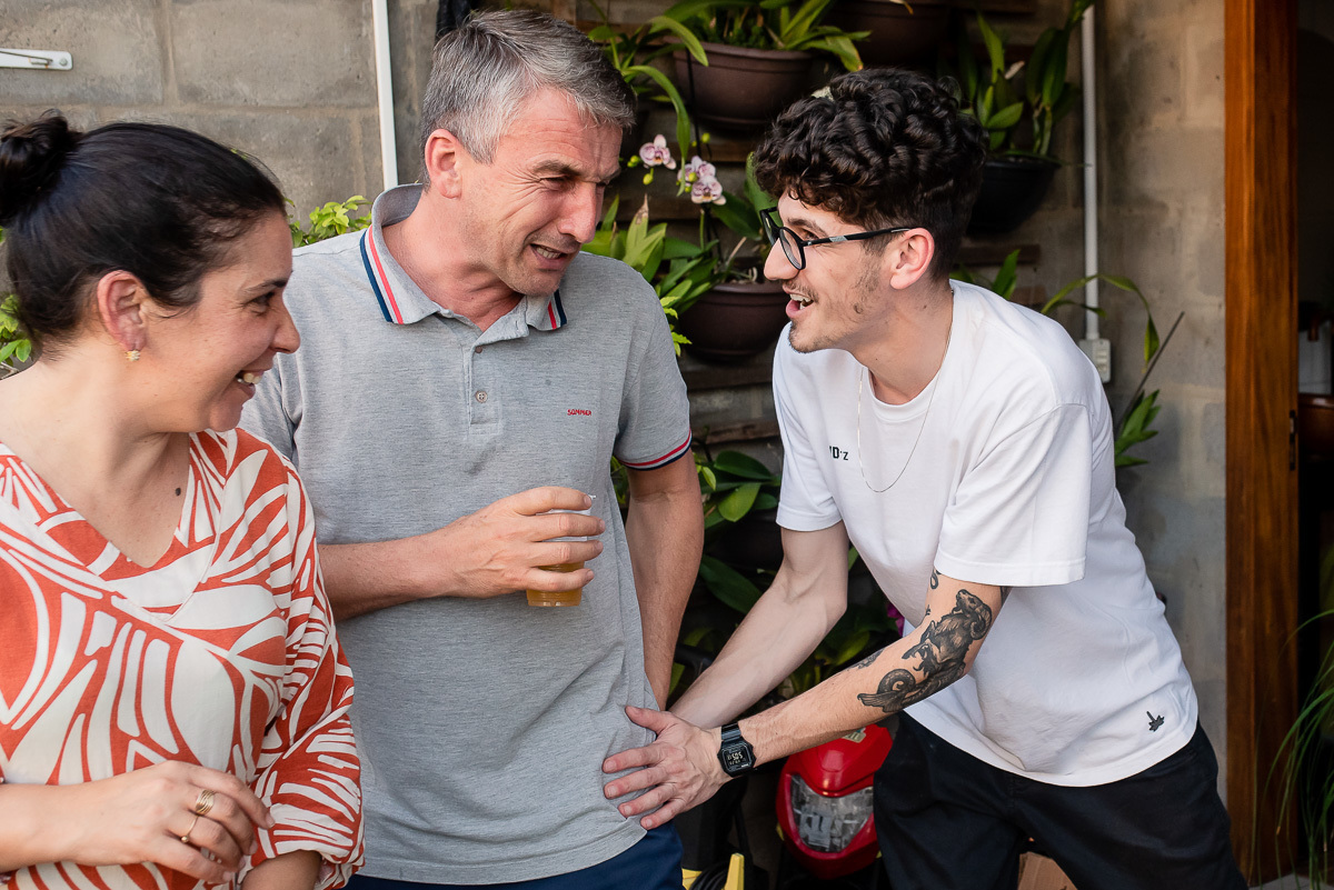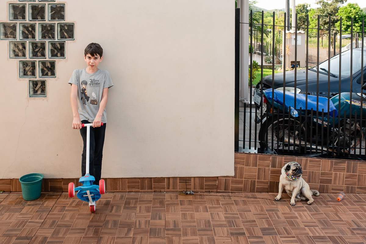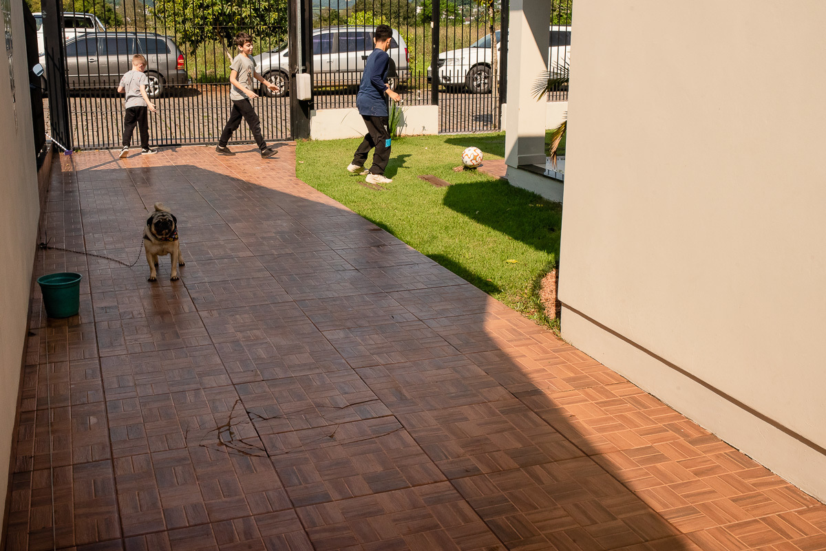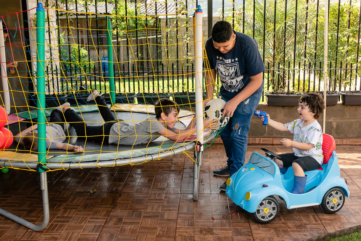 Como o aniversário tinha sido cancelado, voltamos para casa e quando o tempo tinha melhorado um pouco eu decidi mandar uma mensagem para a mãe do Miguel e pedi o que eles iriam fazer de noite. Ela já me mandou que estavam reorganizando a festa na casa deles, haviam ido buscar algumas coisas no sítio e me pediu se eu queria almoçar com eles e eu que não sou bobo, já fui direto e levei a câmera junto. Logo que cheguei encontrei um garoto todo animado em saber que a festa que ele tanto queria, iria acontecer!