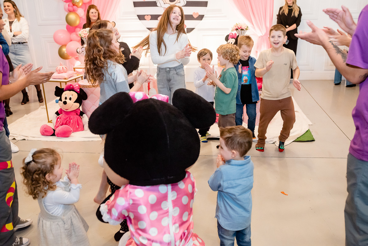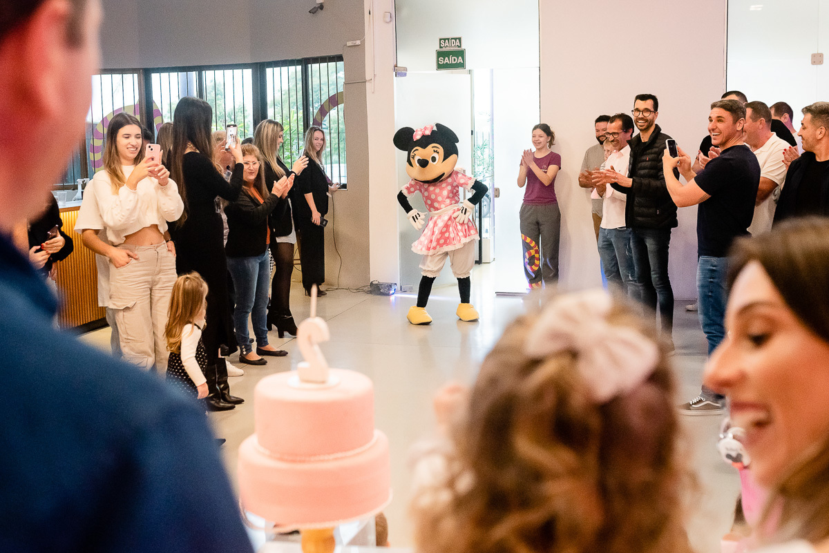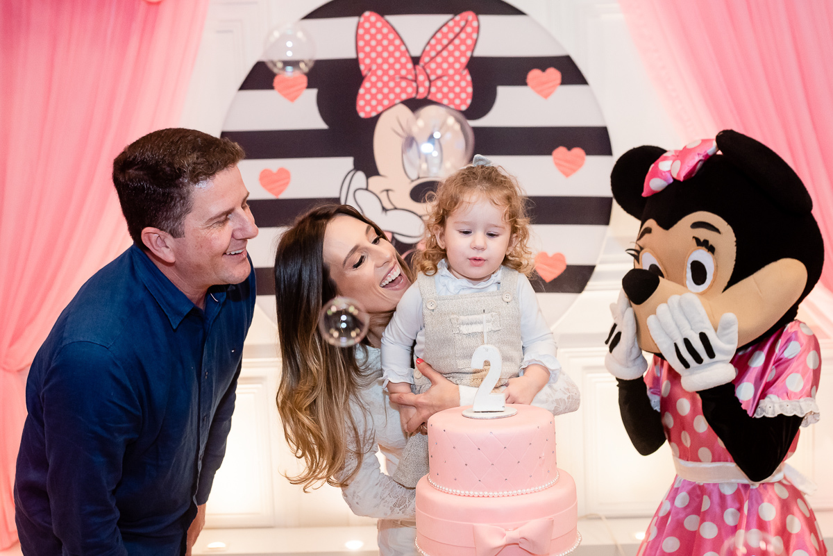 Além do tema da festa ser da Minnie, a própria veio diretamente da Disney para dar os parabéns e brincar com a aniversariante!