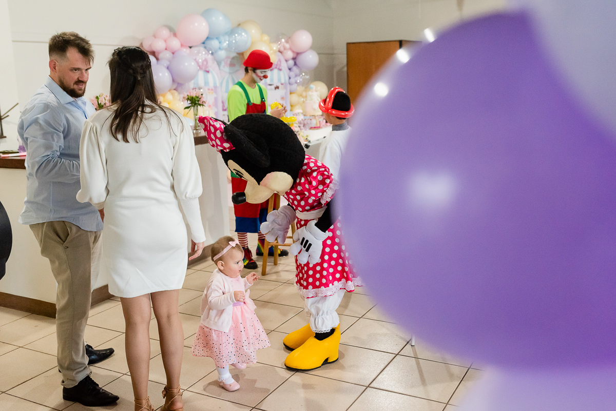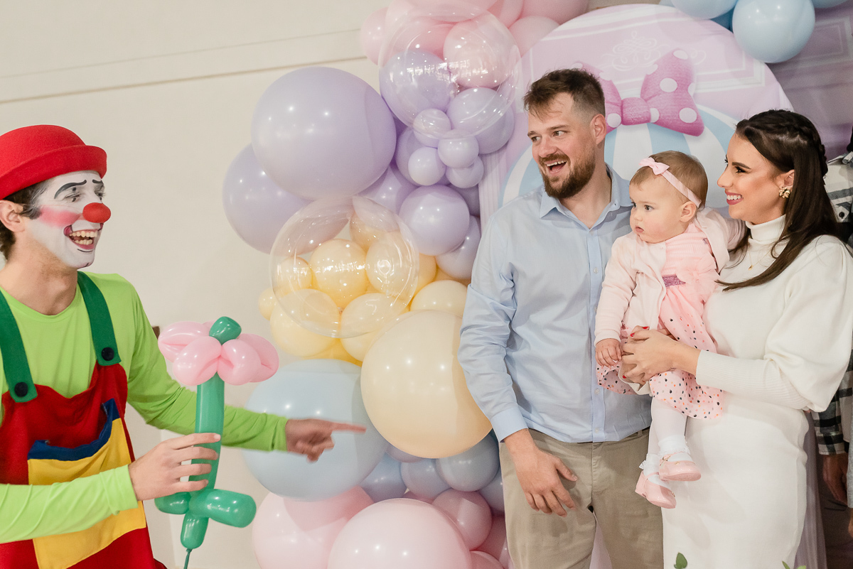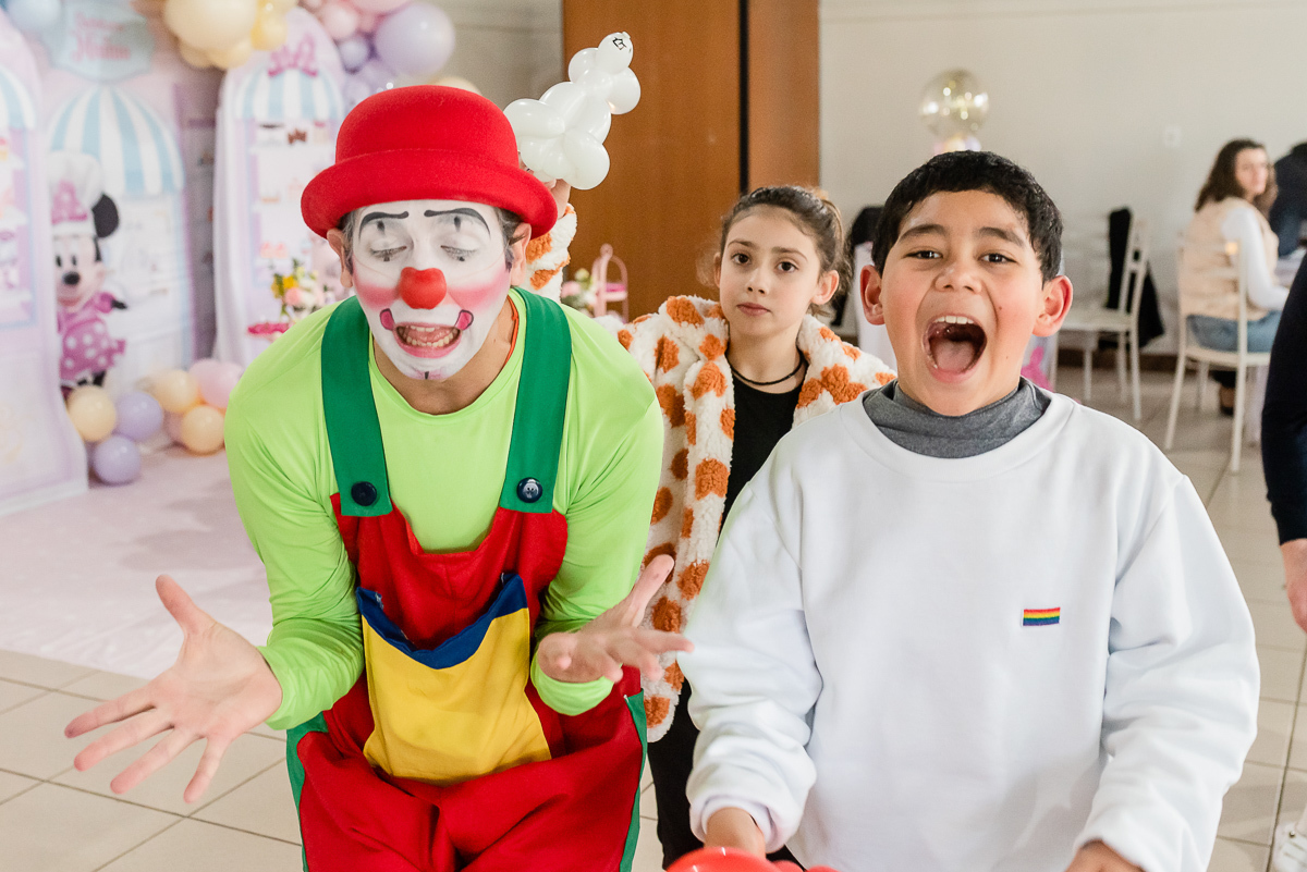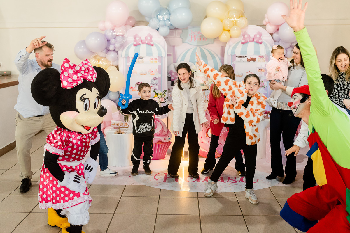 Essa princesa também curtiu muito a festa, não desgrudou os olhos do palhaço e ficou toda curiosa e encantada com a Minnie.