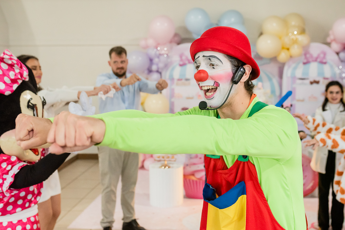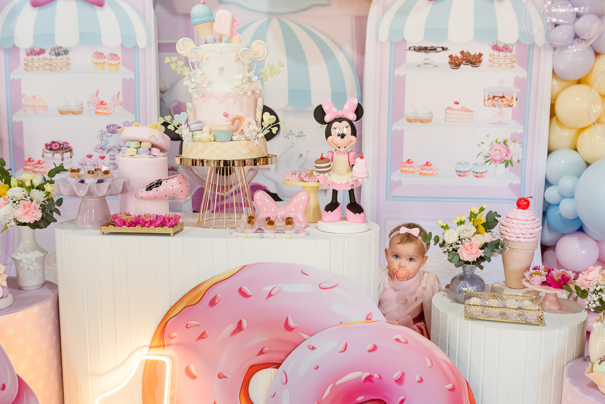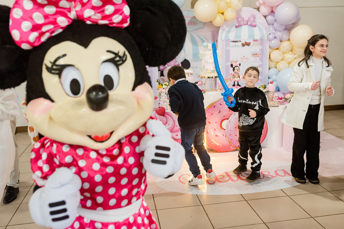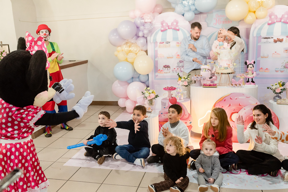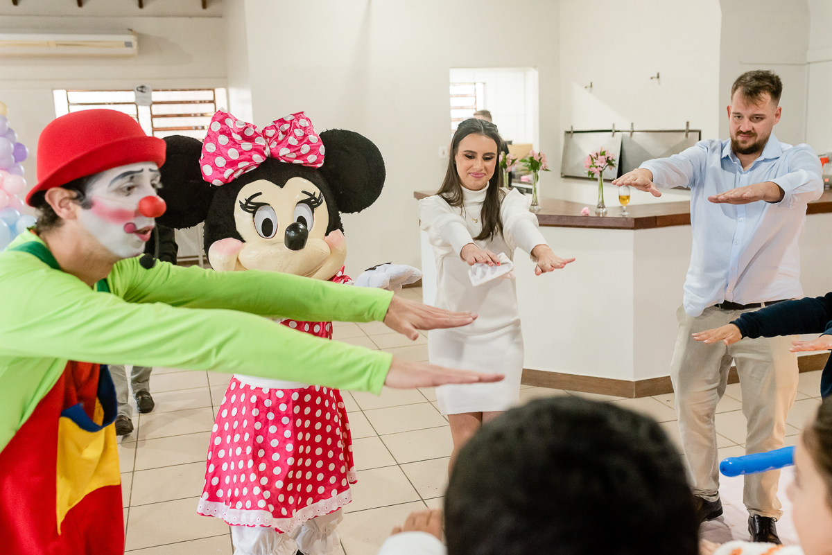Essa princesa também curtiu muito a festa, não desgrudou os olhos do palhaço e ficou toda curiosa e encantada com a Minnie.