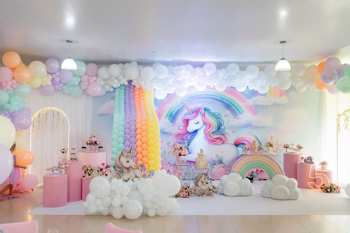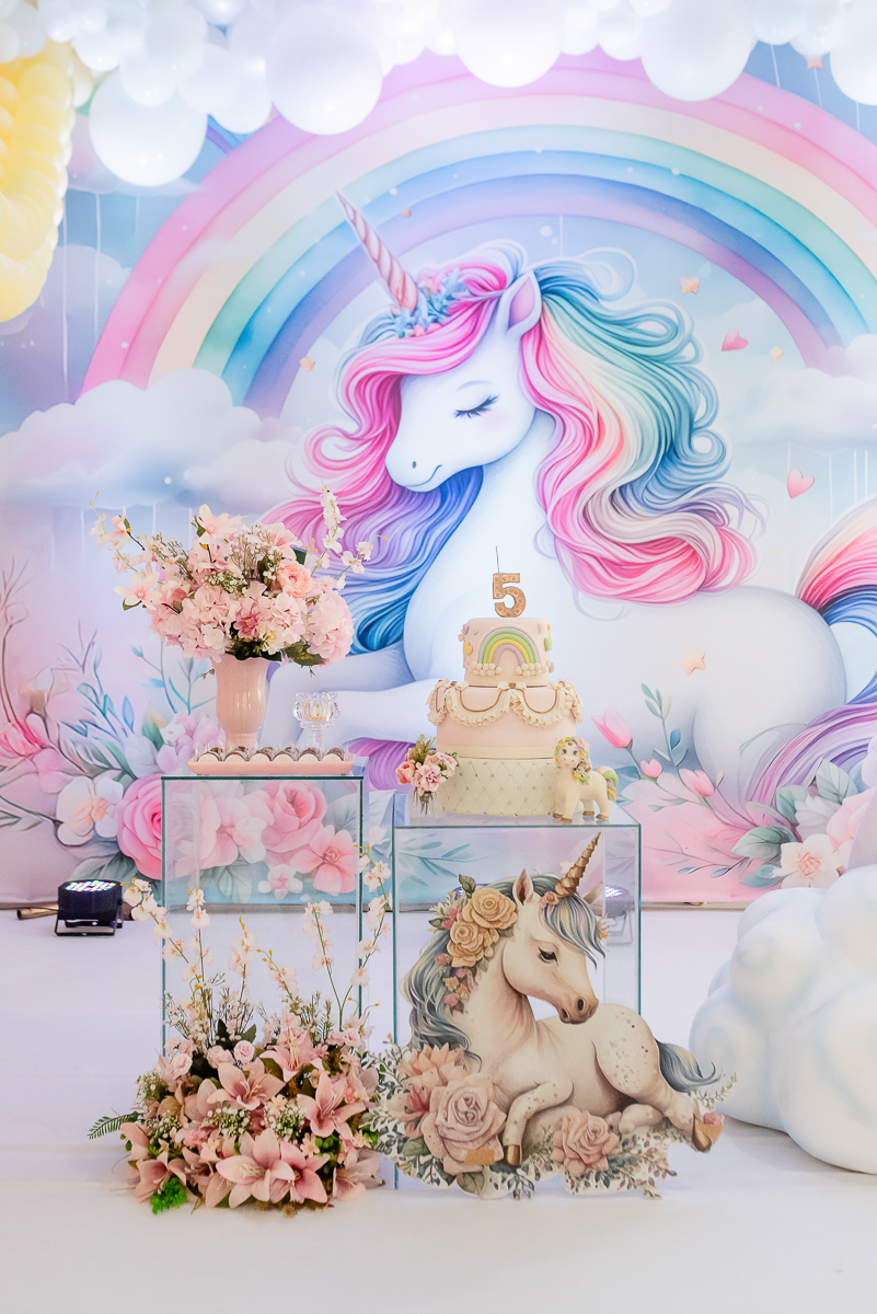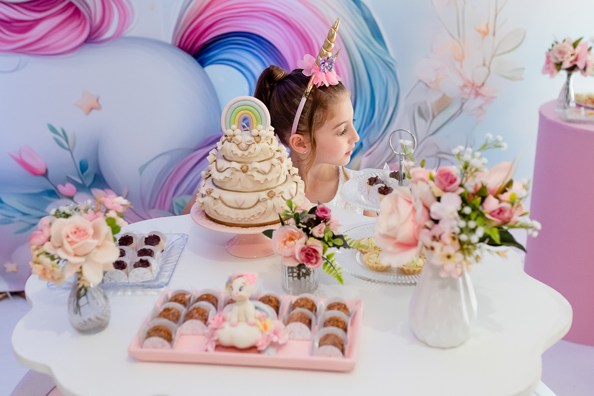 A Maria Valentina é uma menina linda e que amou a sua festa impecável de unicórnio e fantasia!
