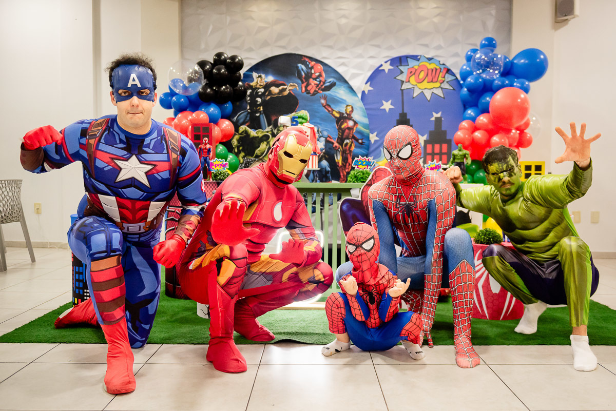 Pra completar, até os Vingadores, selecionados pelo próprio Miguel, apareceram para deixar o dia ainda mais épico! Foi demais ver a alegria estampada no rostinho do Miguel e de toda a turma.