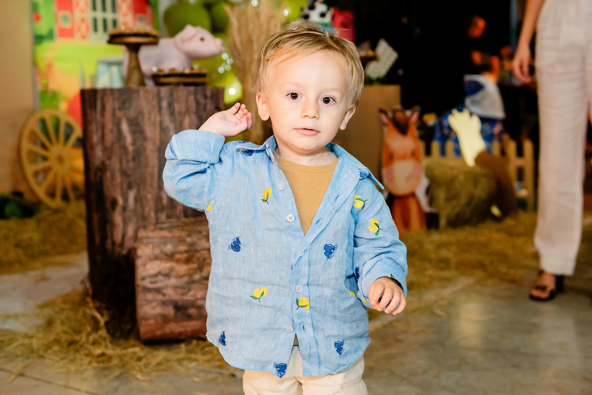 Em meio à fazendinha, o Augusto chegou tímido, mas bastou um tempinho para se soltar e espalhar sorrisos por todos os cantos! Brincou, correu, se divertiu com os amiguinhos e os papais, e fez desse dia uma lembrança cheia de alegria! 💛