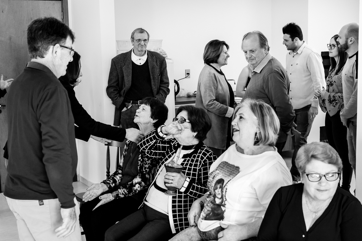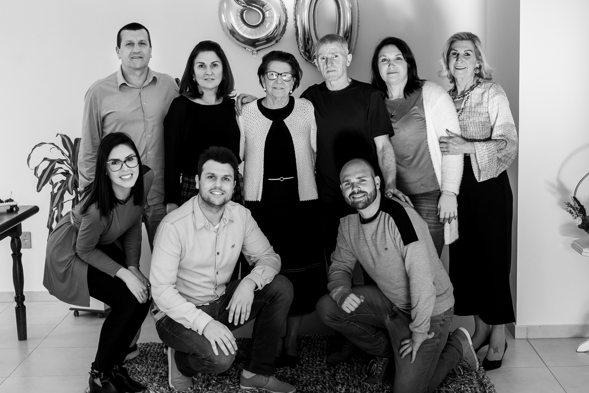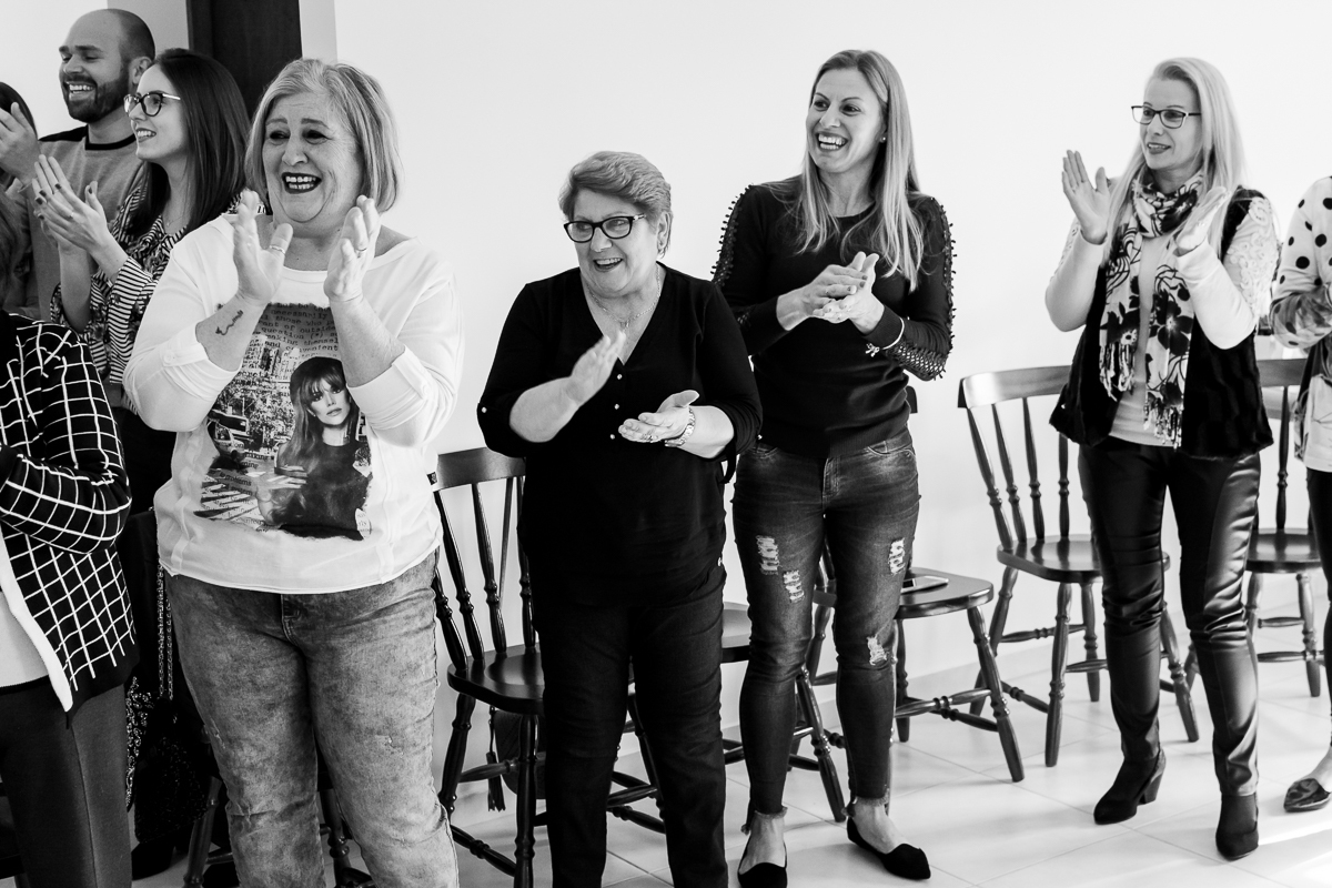 A festa foi surpresa, reunimos todas as amigas dela, a nossa família e suas irmãs. No momento em que ela entrou no salão, o sentimento foi de gratidão e amor, pois a emoção dela ao ver todos ali para lhe abraçar e comemorar, foi algo realmente marcante. Ver meu pai extremamente feliz e minhas dindas emocionadas, me fez perceber ainda mais que a família é sim a base de tudo.
