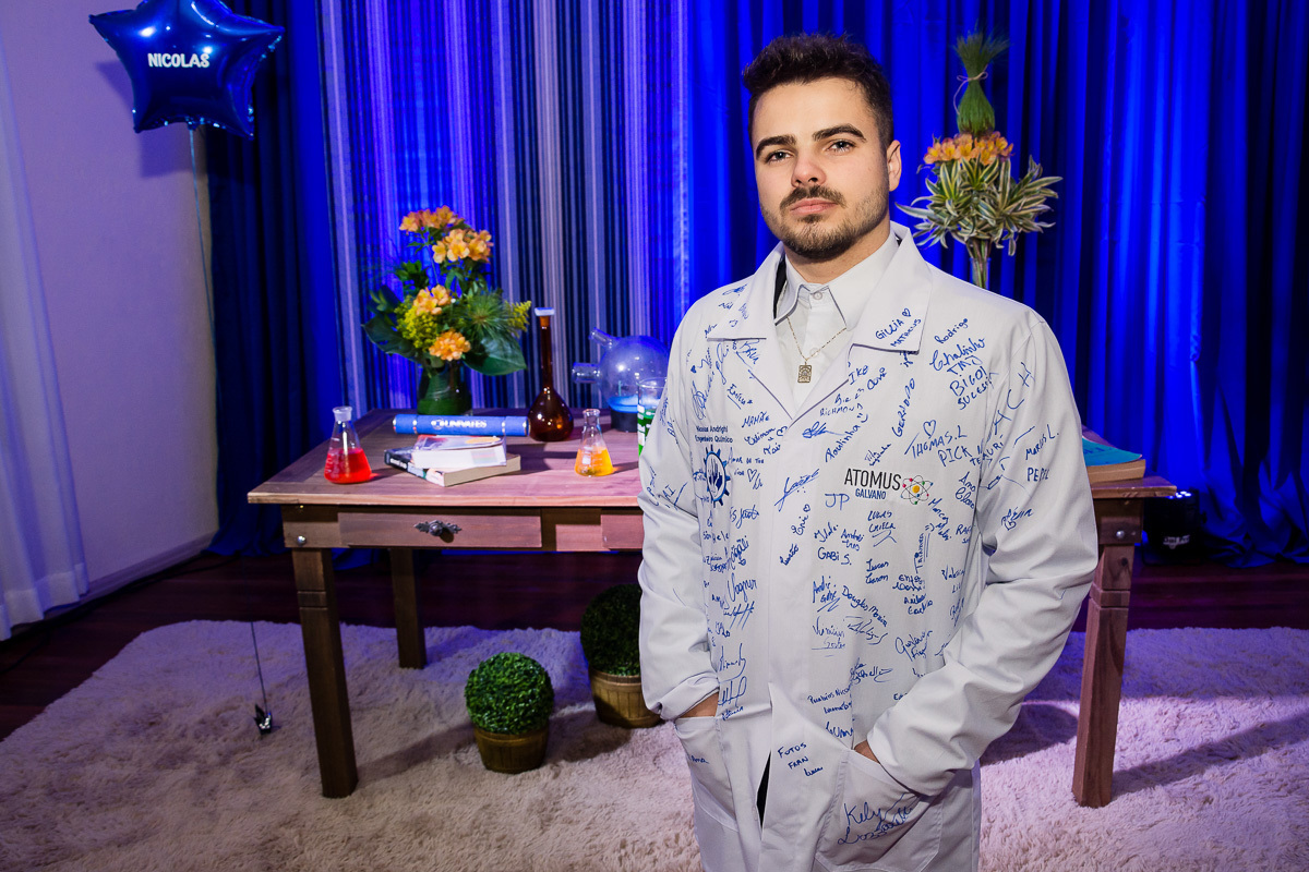 Essa foi a essência da festa de formatura do mais novo engenheiro químico, uma festa com muita emoção, sentimento de dever cumprido, música e principalmente alegria e sorrisos. Também teve depoimento do Danrlei e jaleco assinado por todos que estavam presente.