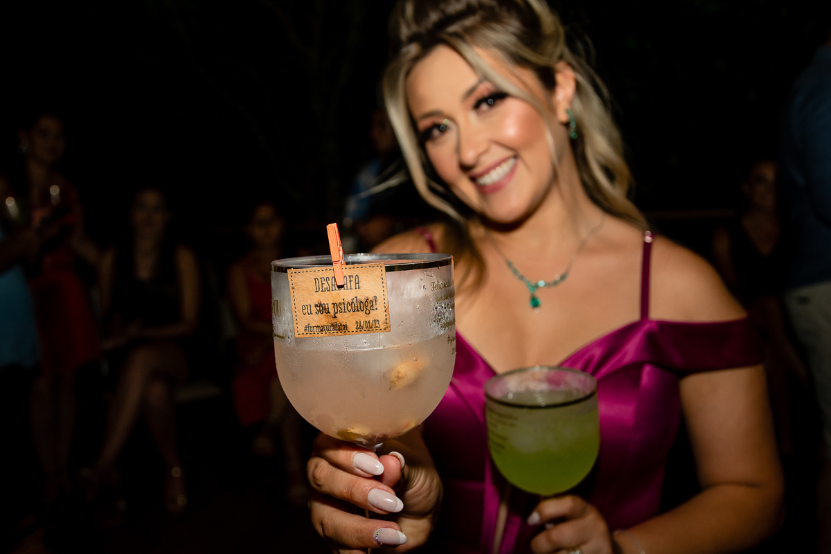 Emoção e sorrisos foi o que mais teve nesse dia. A nova psicóloga sabe muito bem como comemorar essa conquista, foi tudo muito lindo e perfeito. Graças ao namorado, que ajudou na organização e até fez um bico de barman.