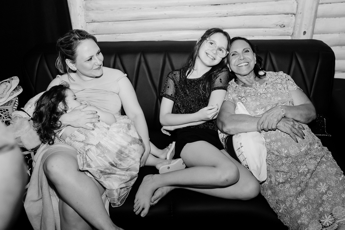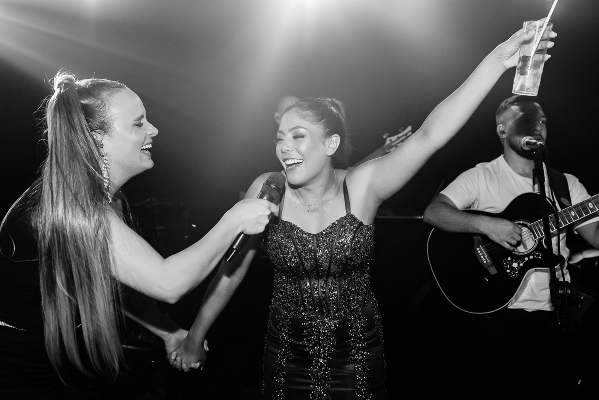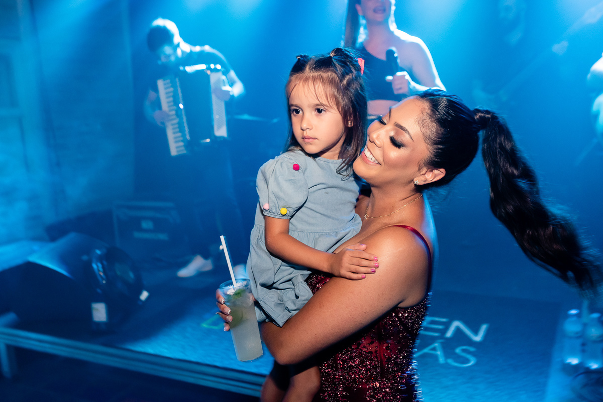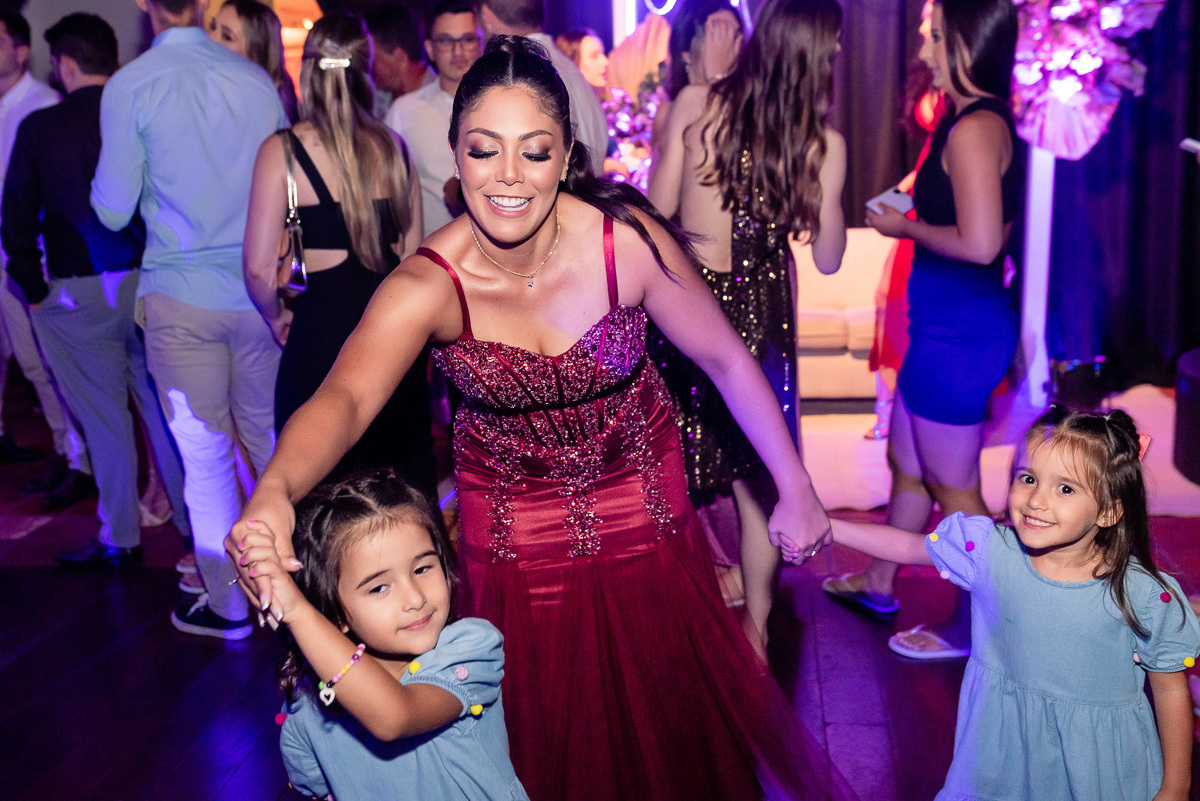 A mulher que ama dançar foi protagonista de uma das festas mais animadas que eu já presenciei, com um lindo show da Kelen e com participação da Eduarda e dos pais dela, que também subiram no palco para cantar junto com a banda.