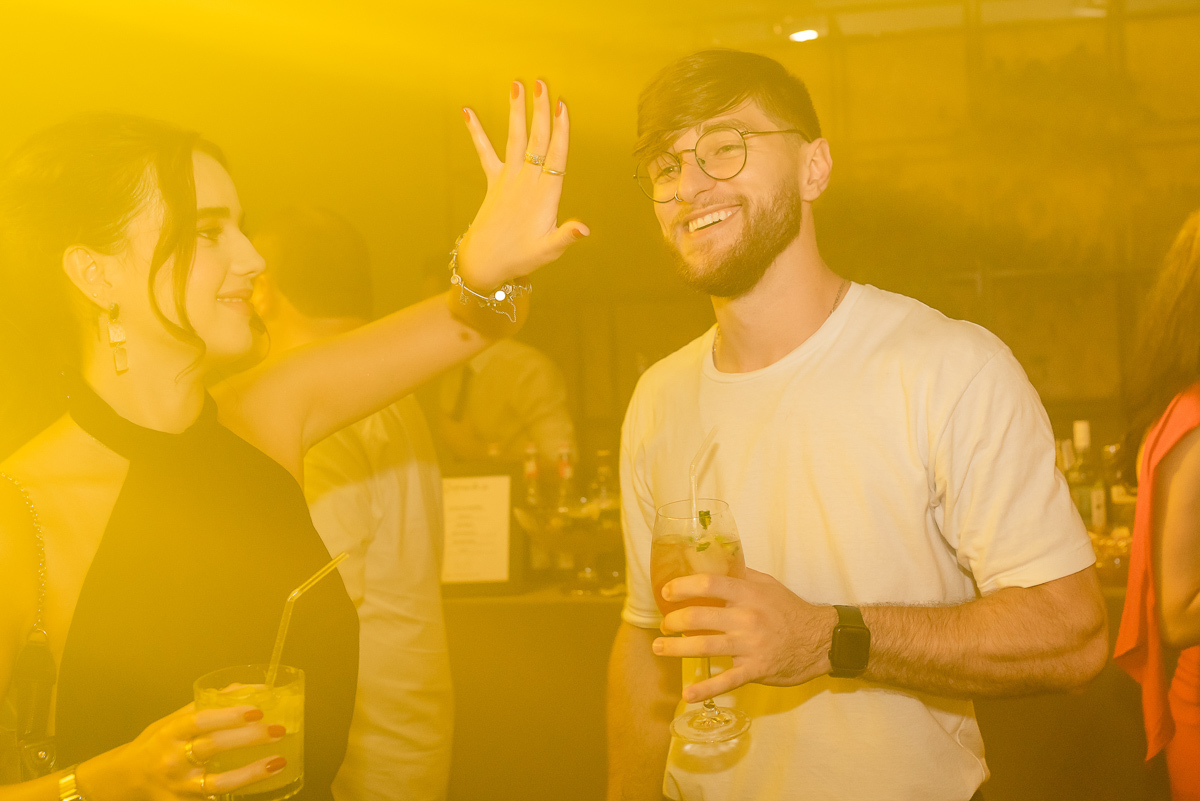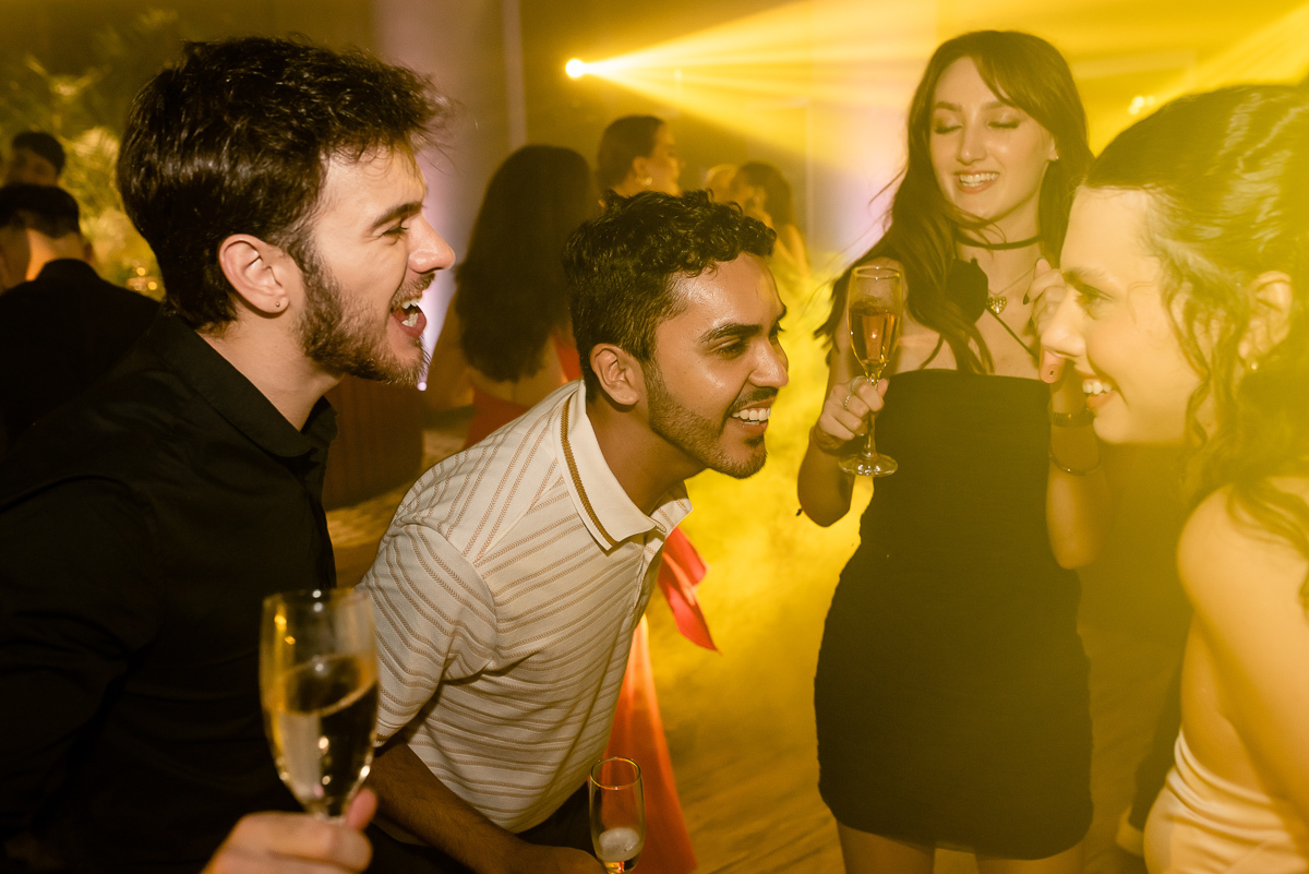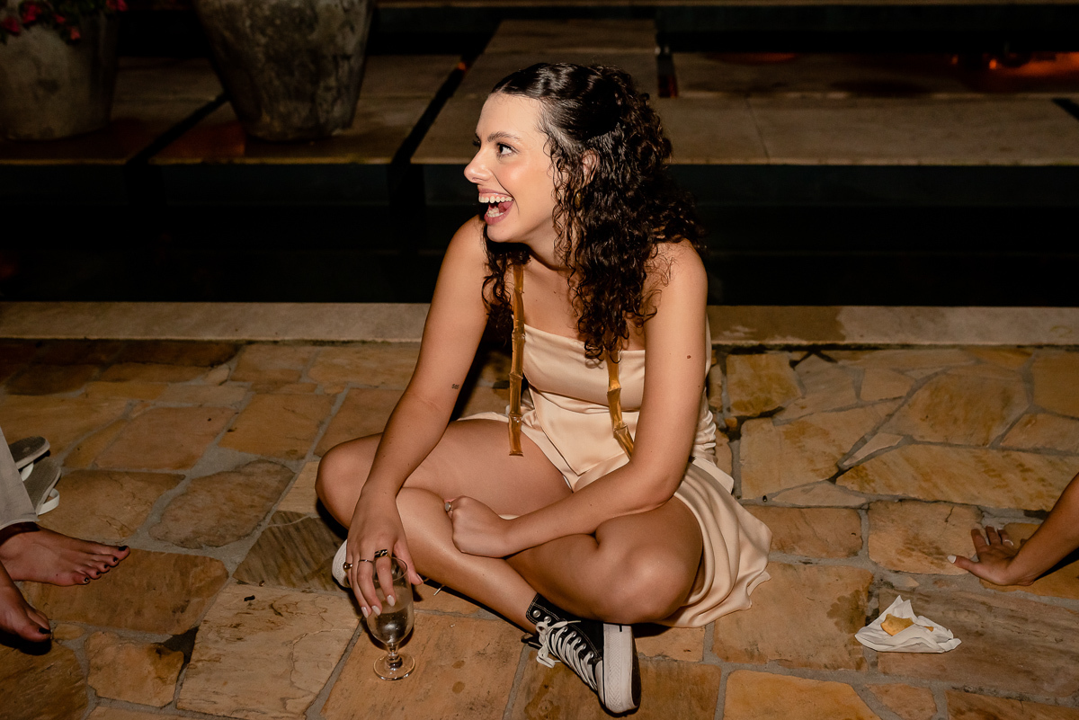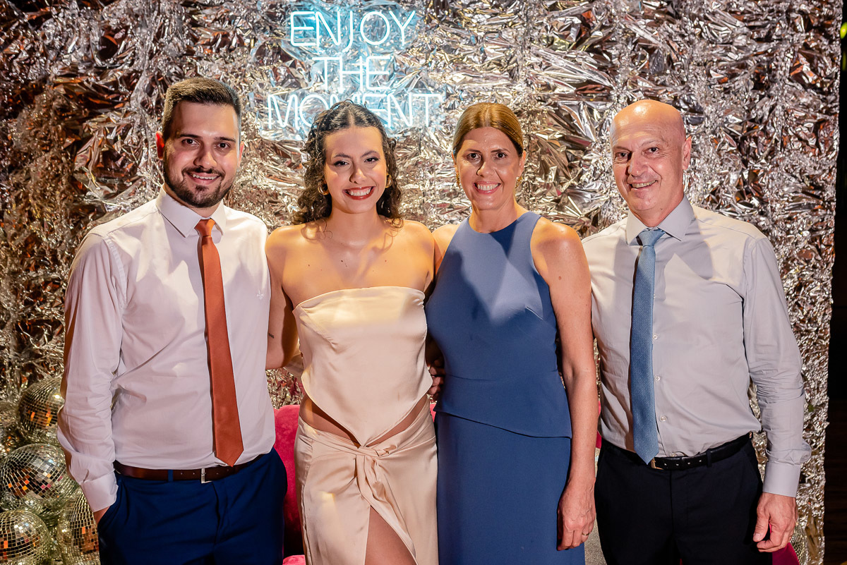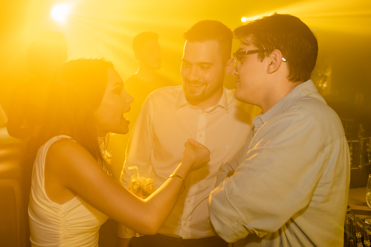Após a colação, os convidados a aguardavam em um sunset, que tem tudo a ver com a Luísa. Assim que a ela chegou e recebeu um abraço de cada convidado tivemos um brinde e posteriormente uma linda e animada festa.