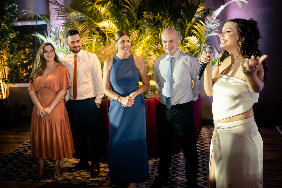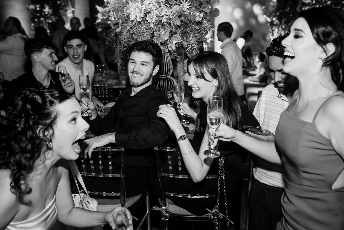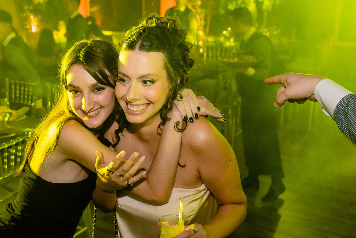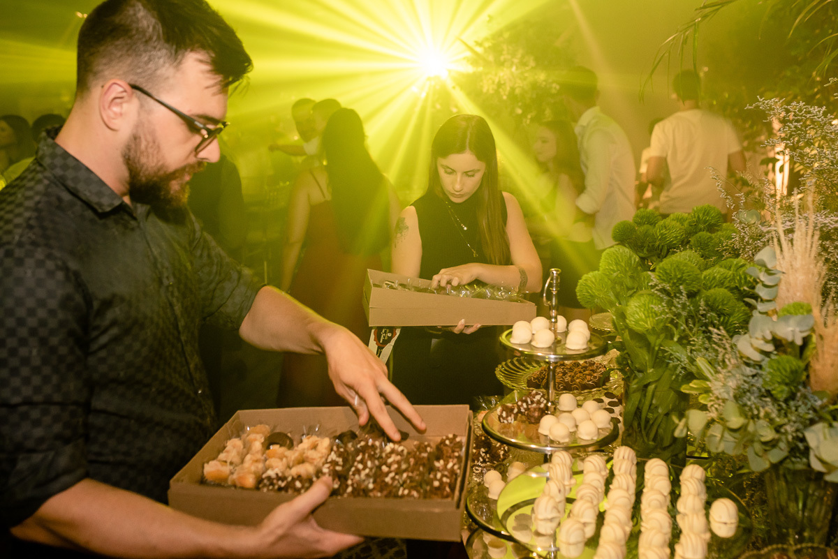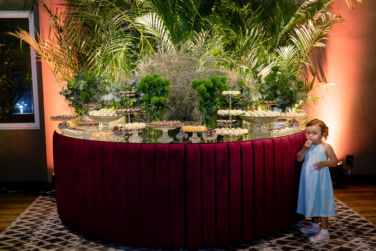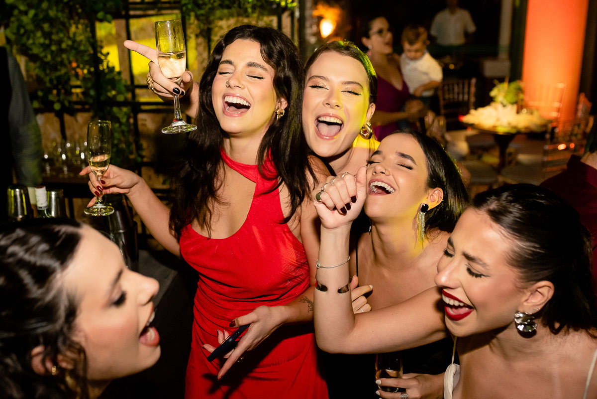 Após a colação, os convidados a aguardavam em um sunset, que tem tudo a ver com a Luísa. Assim que a ela chegou e recebeu um abraço de cada convidado tivemos um brinde e posteriormente uma linda e animada festa.