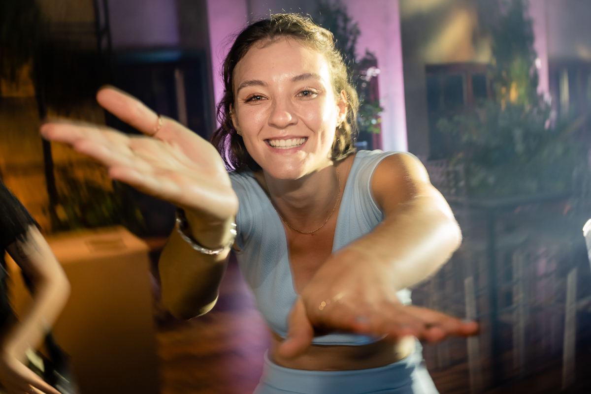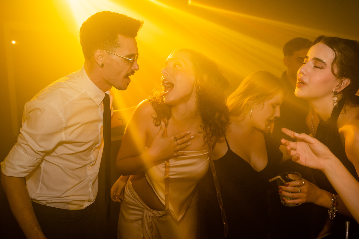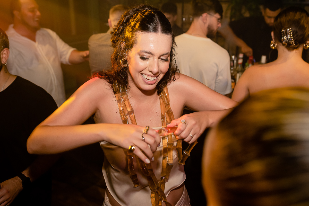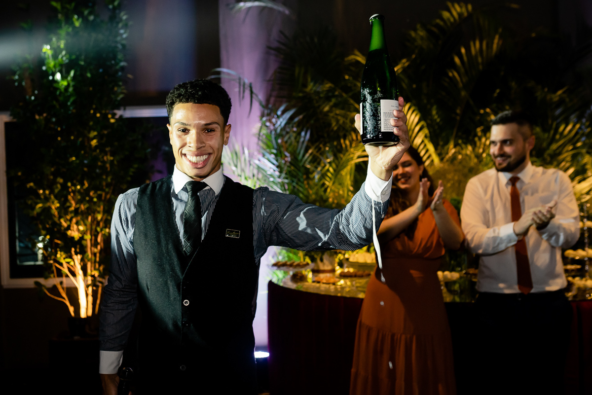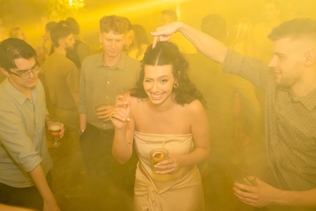 Após a colação, os convidados a aguardavam em um sunset, que tem tudo a ver com a Luísa. Assim que a ela chegou e recebeu um abraço de cada convidado tivemos um brinde e posteriormente uma linda e animada festa.