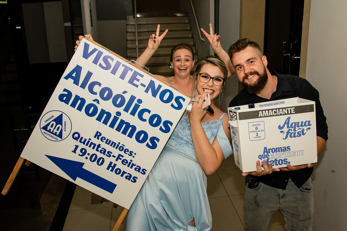 Foi uma festa um pouco diferente do habitual e com alguns momentos inusitados, começando com o enorme calor que fez no dia, logo no começo da festa o vestido da Nátalli soltou a costura, placa do AA, pé machucado, passeio de carrinho de supermercado, muita folia e um acontecimento que eu nunca pensei que iria presenciar e fotografar, a formanda saiu no meio da festa para ir ao mercado pegar mais bebidas!