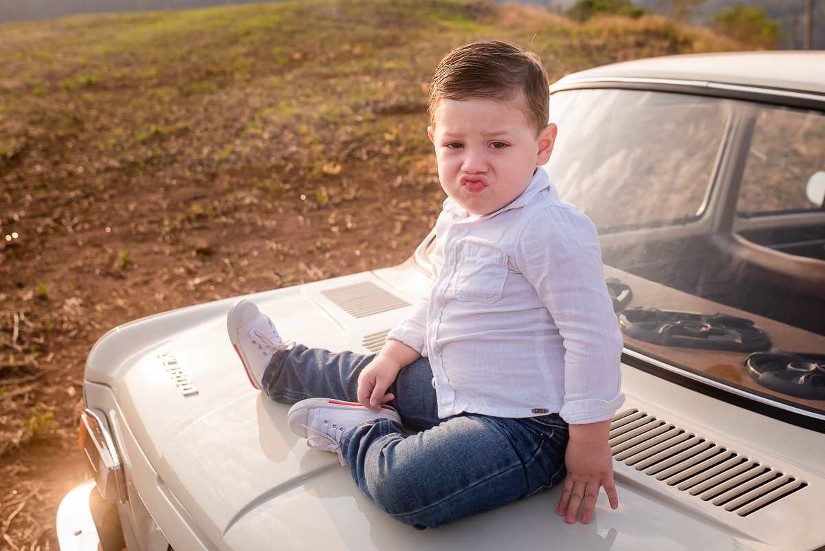 Os pais do Arthur escolheram registrar essa fase do pequeno com uma sessão de fotos no carro antigo/novo do papai!