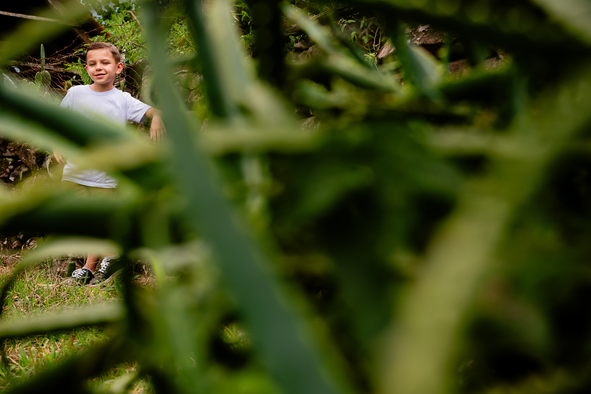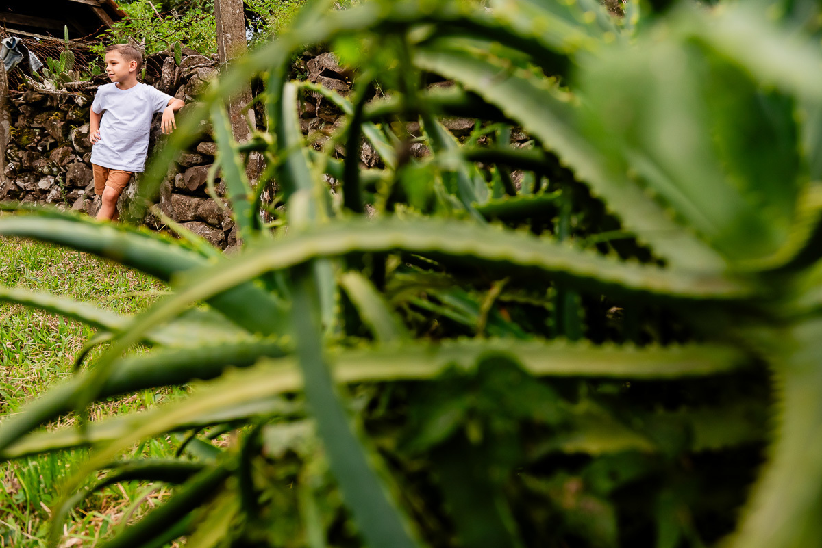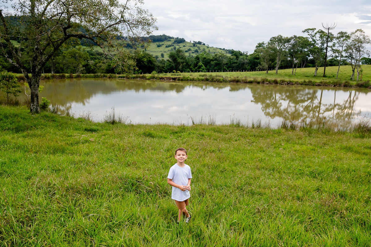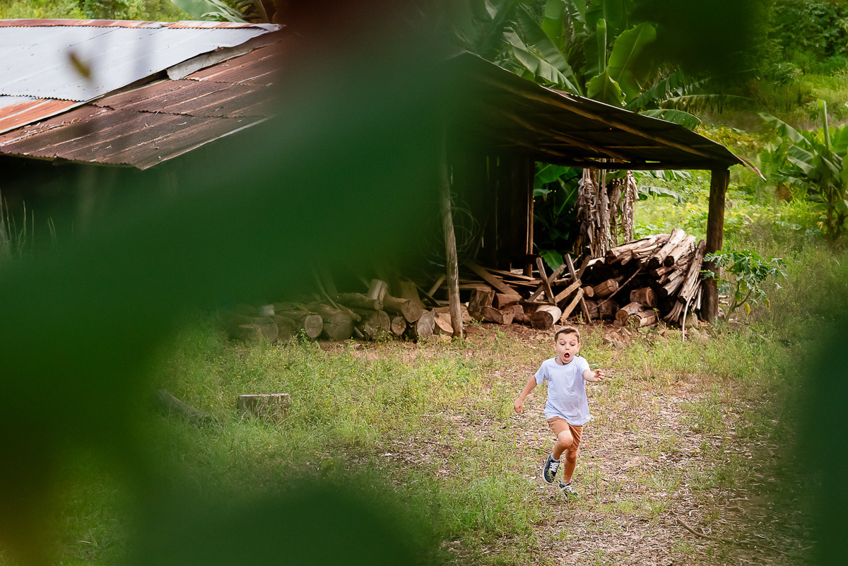 O Tavinho tem o riso solto e coração leve. Daqueles que correm pelo sítio como quem conhece cada canto, como quem faz do mundo um lugar de brincar. Entre uma descoberta e outra, ele transforma o simples em memória.