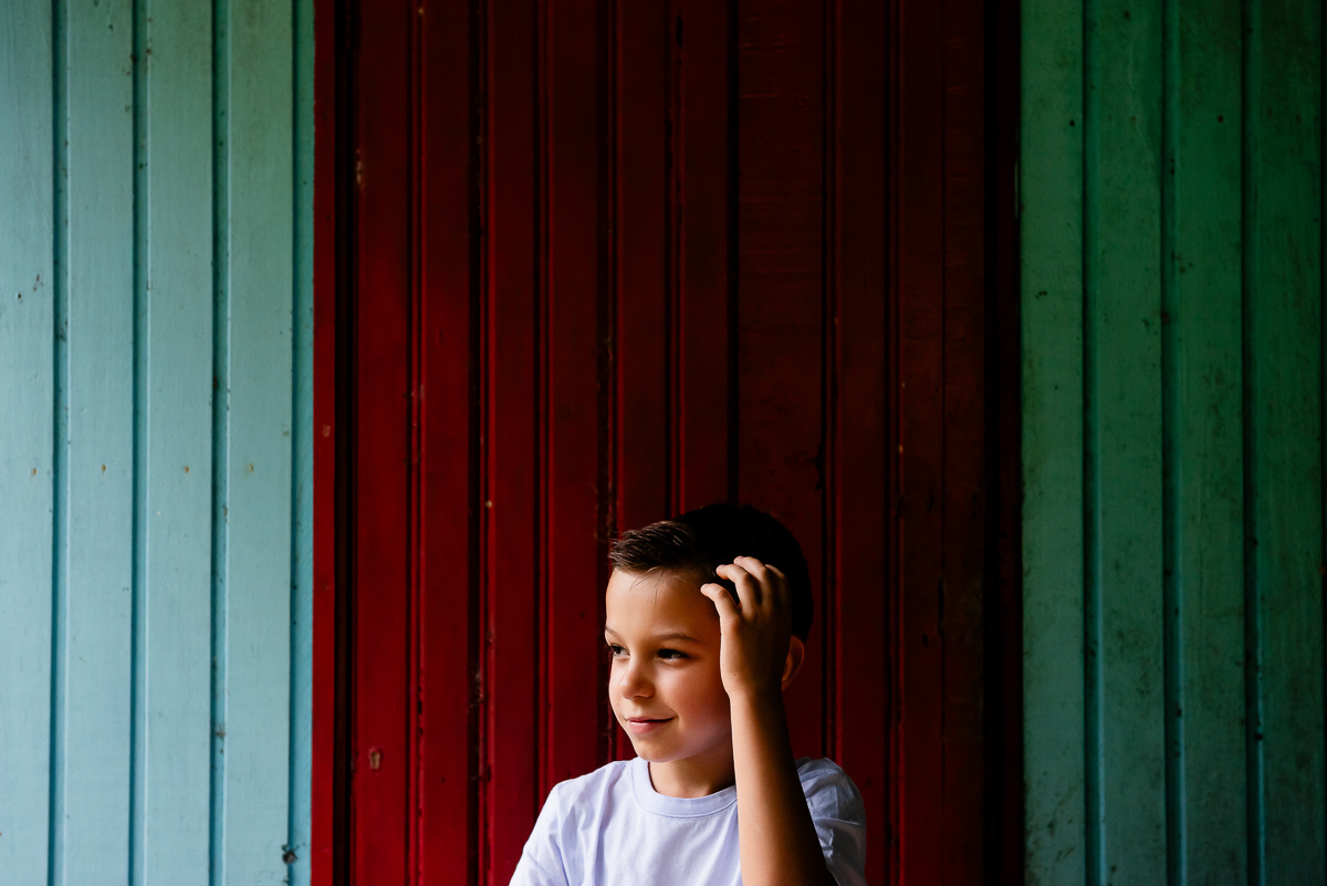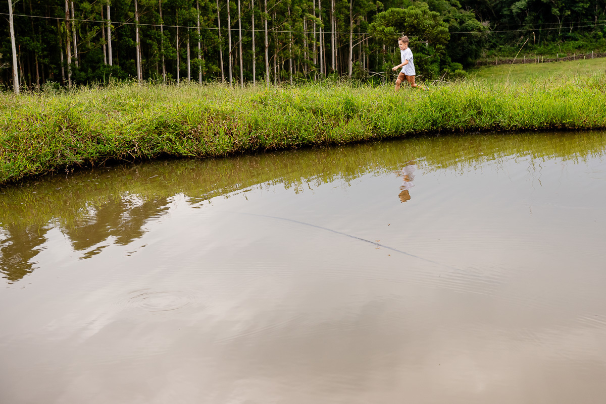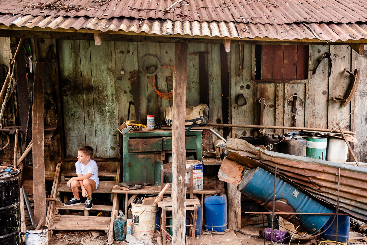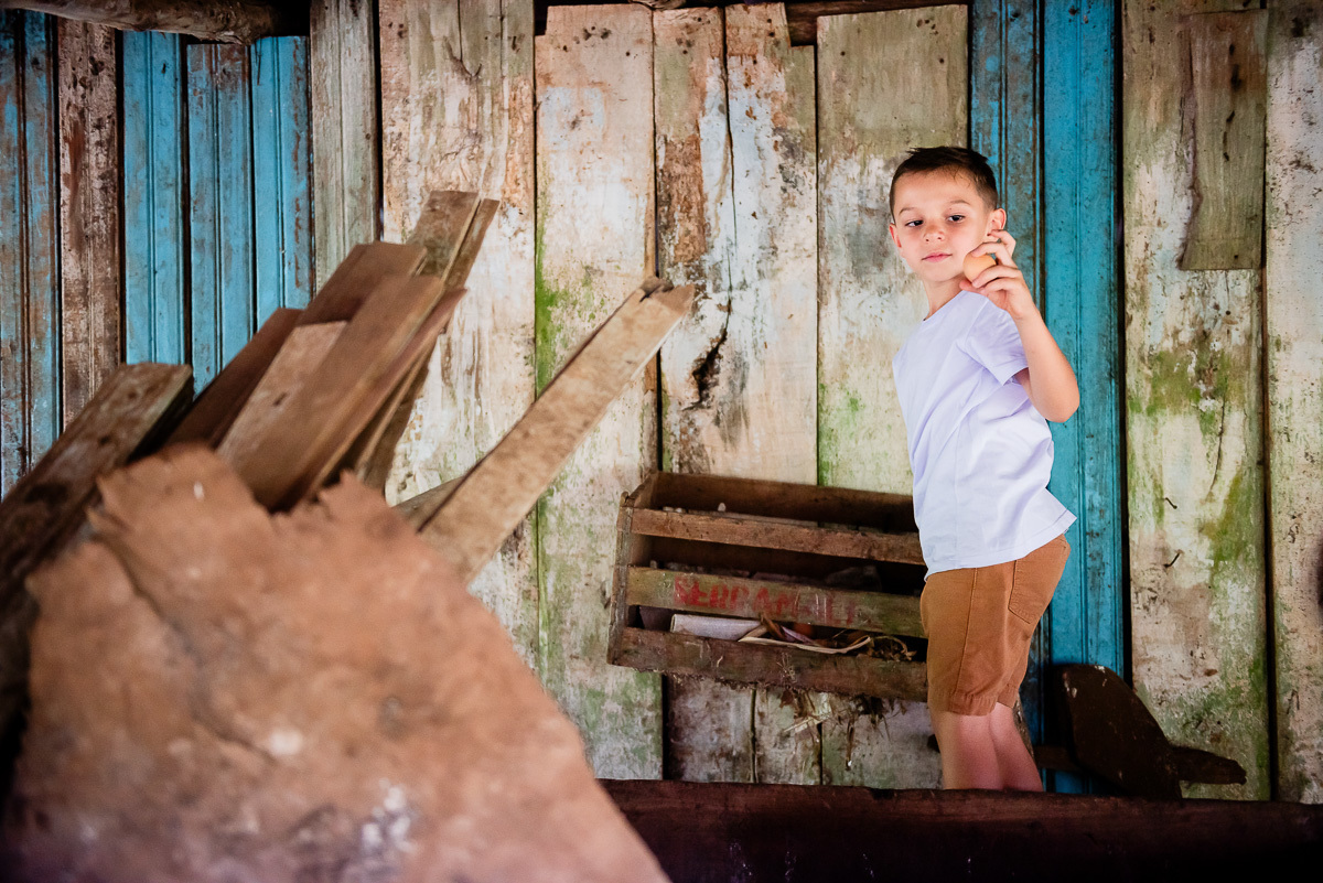O Tavinho tem o riso solto e coração leve. Daqueles que correm pelo sítio como quem conhece cada canto, como quem faz do mundo um lugar de brincar. Entre uma descoberta e outra, ele transforma o simples em memória.